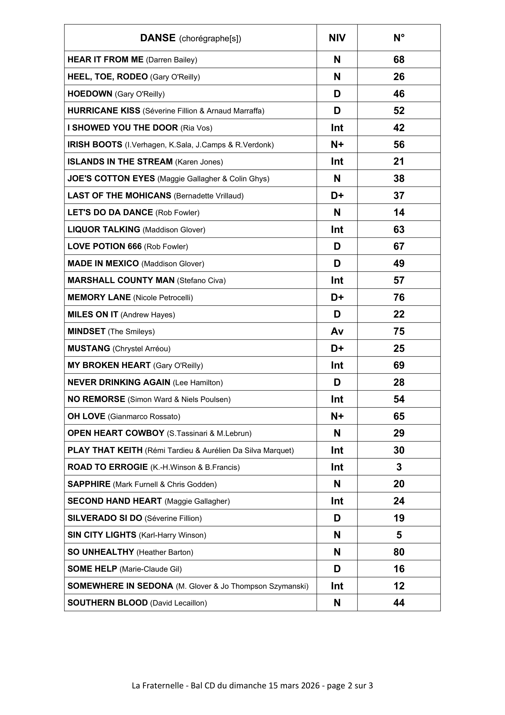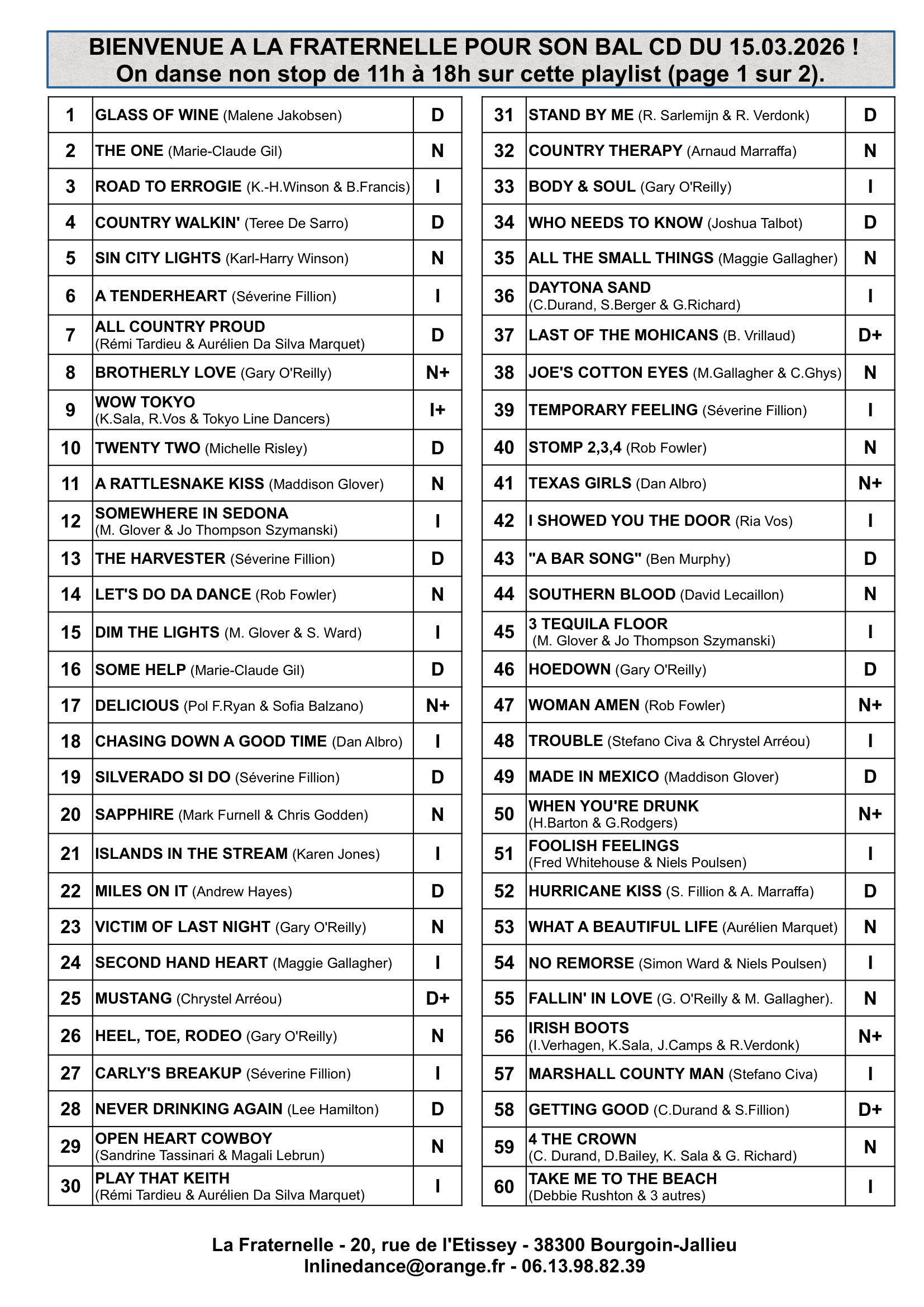 La Fraternelle organise son bal annuel Country et Line Dance le Dimanche 15 mars 2026, de 11h à 18h!